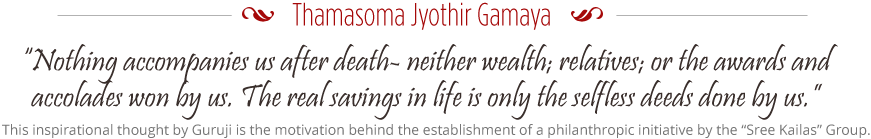 The Trust is a voluntary commitment of the Sree Kailas group to identify the real less fortunate in our society.